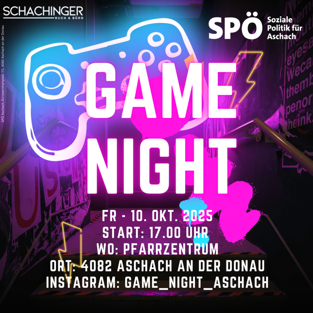 Die SPÖ Aschach an der Donau lädt herzlich zur zweiten Game Night ein!